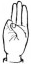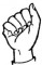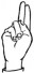 На ћирилици написано АЛЕН МИЉУШ састоји се из 9 слова [?]. Исписано ћириличном једноручном азбуком за глувонеме: